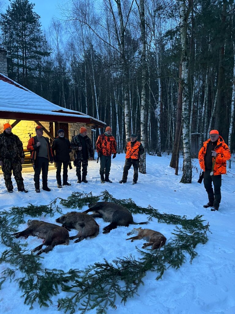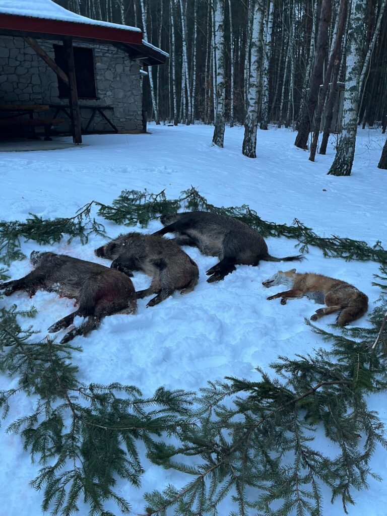 Polowanie na zające 23.11.2025r. 65 sztuk na pokocie.
